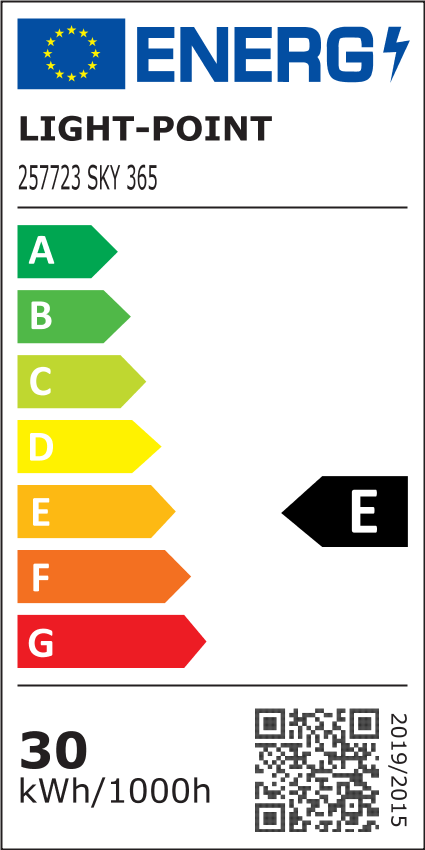 SKY hører til blandt de tyndeste indbygningslamper på markedet. Lampen er udført i hvidlakeret aluminium, og den fås i fem størrelser: Fra 265 til 950 mm i diameter.